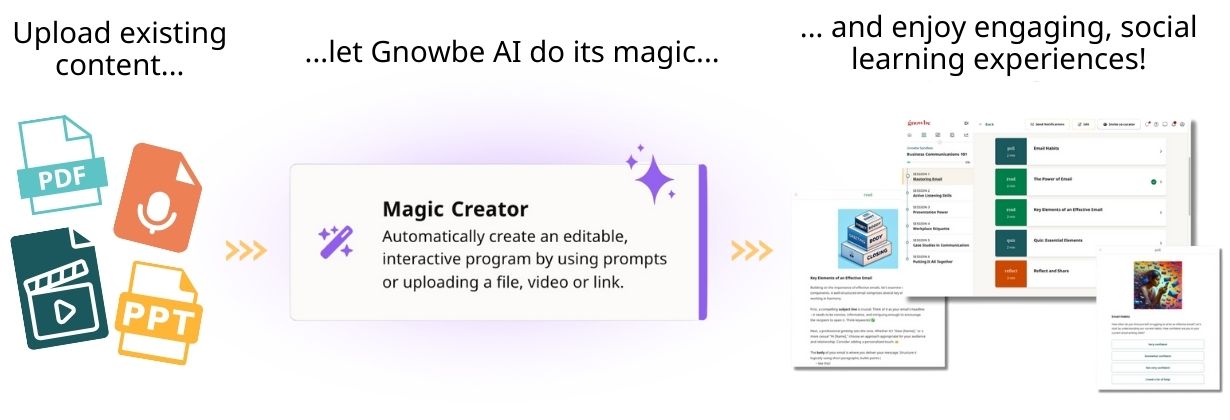 Magic Creator, the newest addition to the Gnowbe AI Suite, automatically creates powerful training experiences like magic, in minutes.
